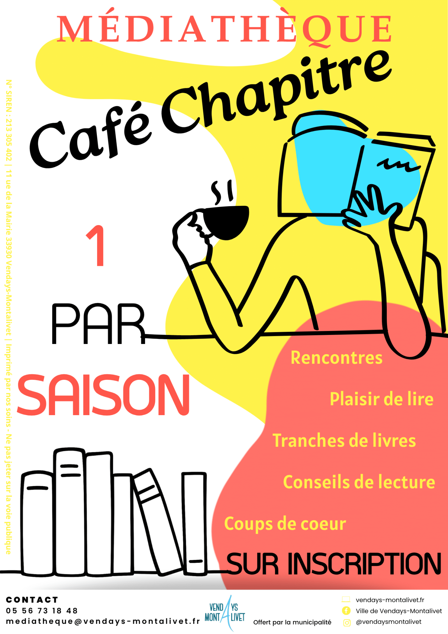 Grâce à votre adhésion gratuite, vous pouvez emprunter pour 3 semaines consécutives : 3 livres et 2 CD.
